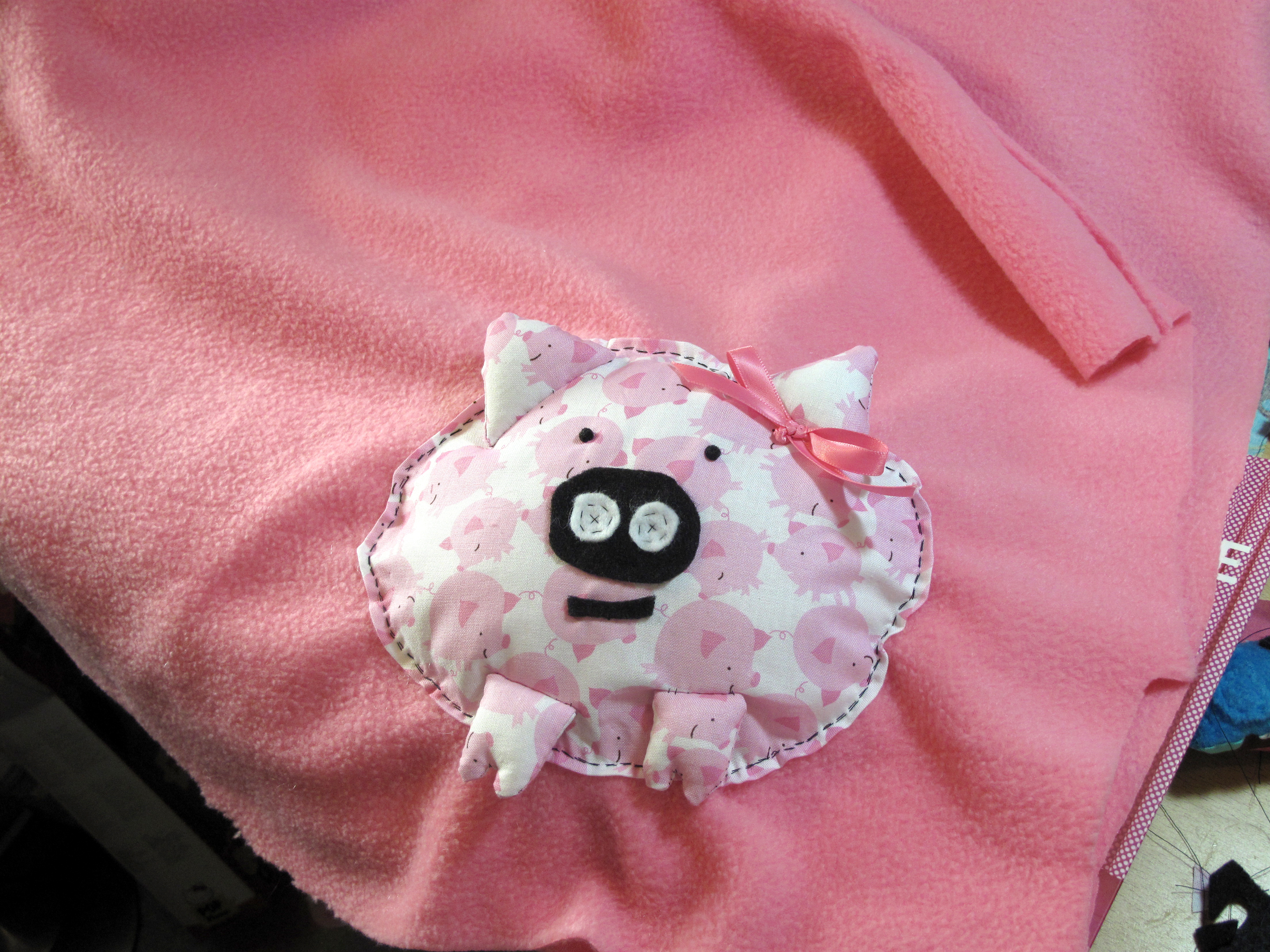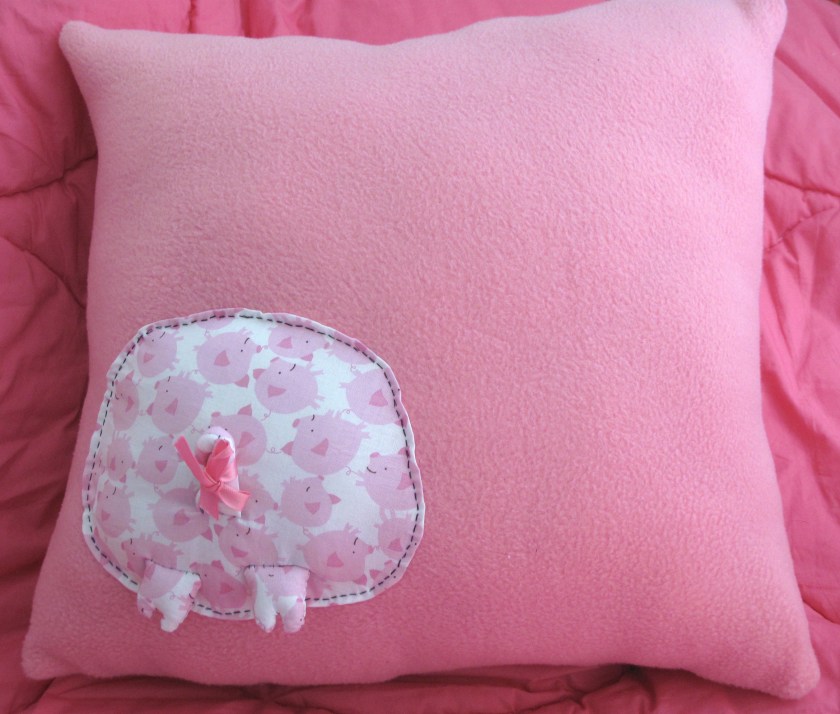 2012, Art, arts & crafts, creative, Cute, Decorating, fabric, Handmade, hobby, Kawaii, Kids, Kristin Bell, pig, piggy, pillow, Pillows, Pink, sewing, sewnI had this cute fabric with pigs on it, and I was just itching to use it in some way, so I decided to make a pink piggy pillow. BTW, you can find this supercute pig fabric at Hawthorne Threads. Here is the link: http://www.hawthornethreads.com/fabric/designer/david_walker/get_together/pig_toss_in_pink. It looks much cuter in person and is super soft and comfy too! Anyway, I started out with the pig shape face and hand-stitched the pig. I added a little bit of fluff to the feet and ears and when I sewed the pig on the pillow I added a bit of fluff between the pillow and the pig face. I also put on the back pig butt and added some fluff in that too. And what piggy could be complete without a ribbon on his tail?!? I’m including some pics of the pig in process and the pics of the finished pillow. Click to enlarge. :)