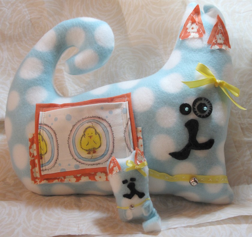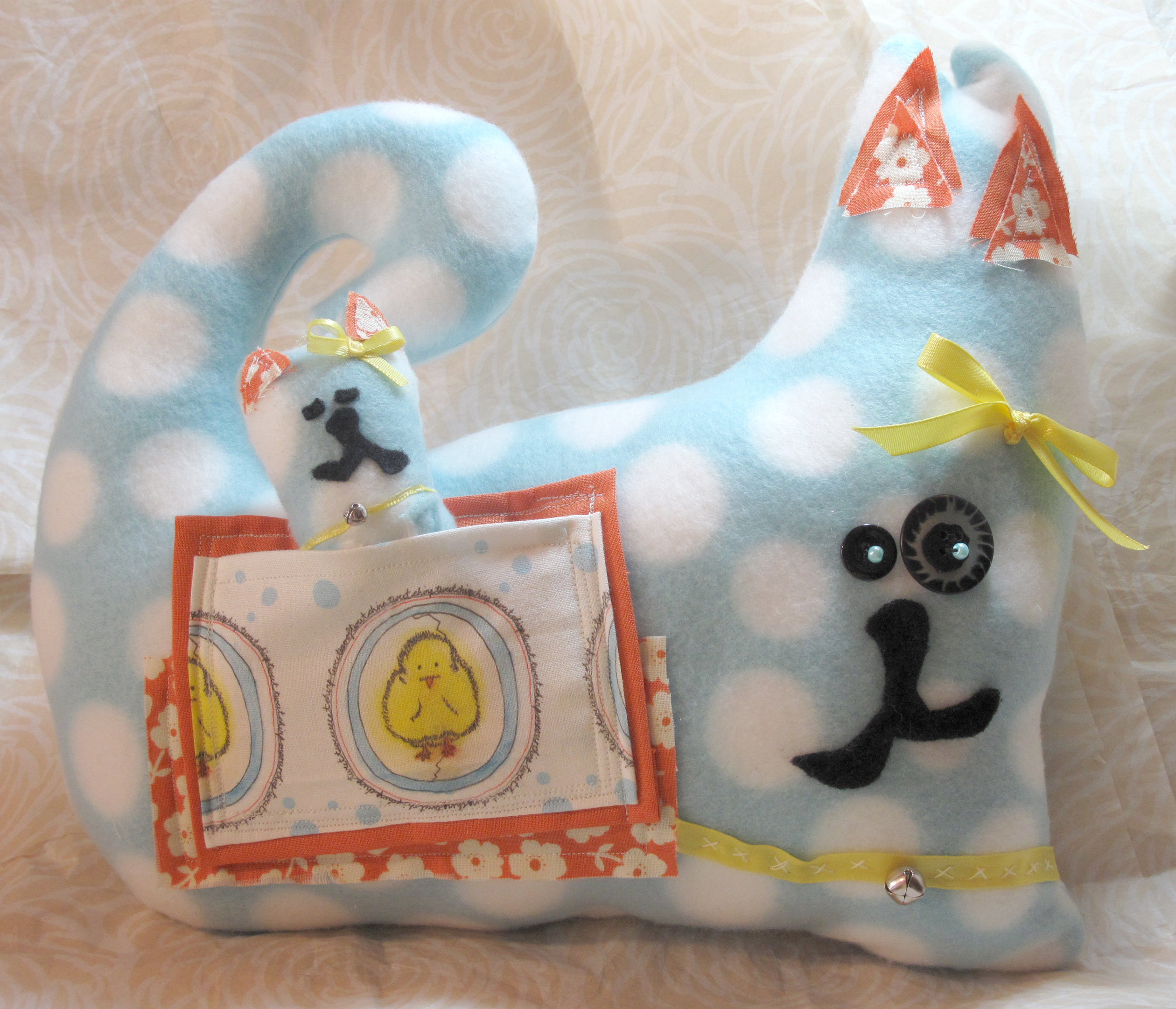 Here are some new pillows I’ve been working on. I’m going to be selling on consignment at In Other Words in Portland, Oregon. I’m pretty excited about it! The first one is Henry Miller Magic cat with red stripes. The second one is Judy the Utie(rus) with minis on the back. The third one is a pillow of Angelica Kauffman and Mary Moser having tea.