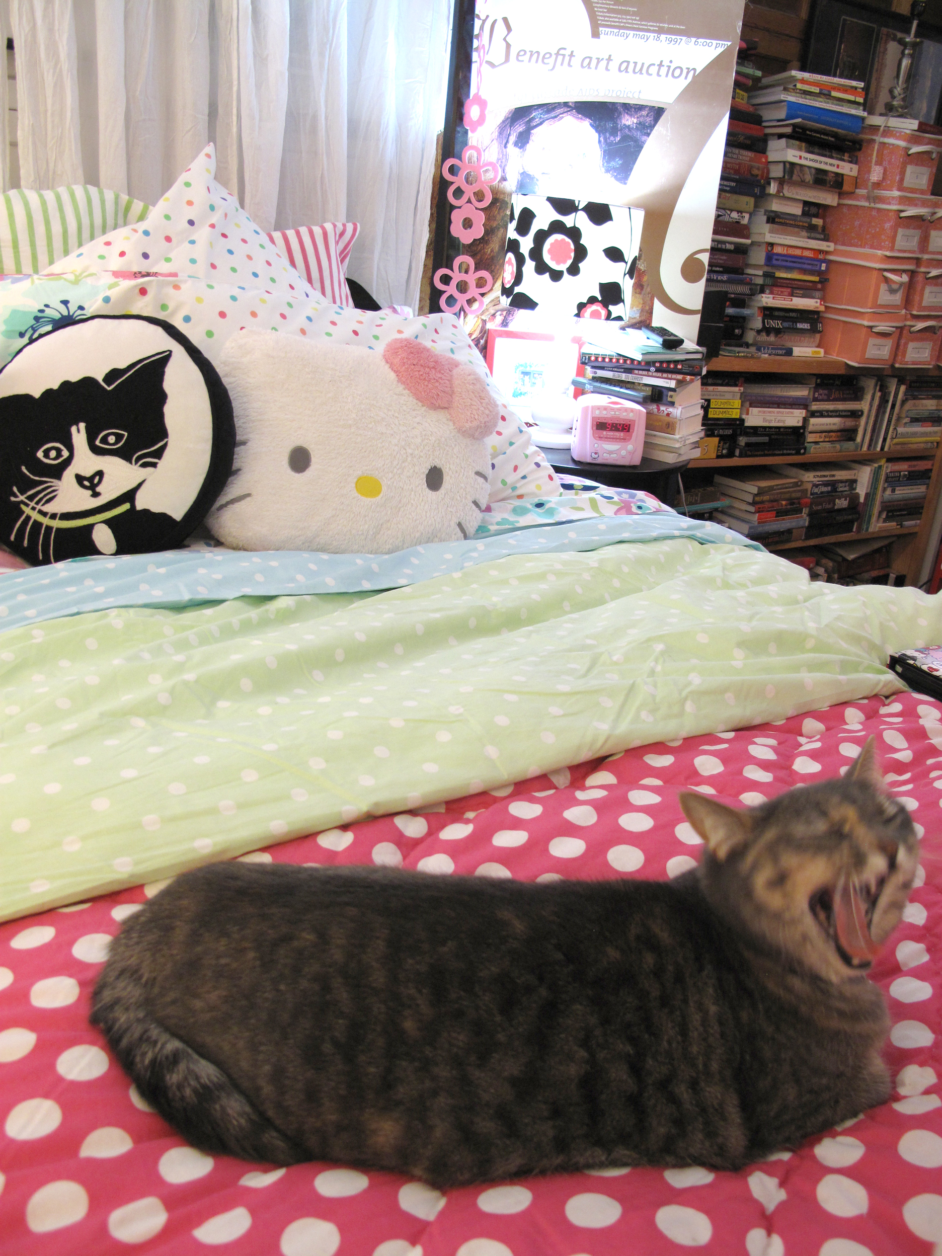 Bed, Bedding, Bedroom, Cats, Cleaning, Collection, Color, Colorful, Cute, Decorating, dolls, Duvet, Fashion, Flowers, Fun, Hello Kitty, Kawaii, Kitties, Kitty, Kristin Bell, Lamp, PBTeen, Pendant, Pillows, SheetsI enjoy decorating my room now and then with new and/or old things. Here are some pics of the things I’ve been decorating. :) A lot of stuff I have gotten at PBTeen Teen Bedding, because I like the colorful stuff they have (even though I’m clearly not a teen!). I usually don’t pay full price for stuff, but wait for sales, and they do have some awesome sales sometimes! The other thing I enjoy about PBTeen is that most of the time their colors mix and match together, so even when you buy completely different things they go together! The rest of my room is a hot mess, but at least my bed is super-comfy! lol