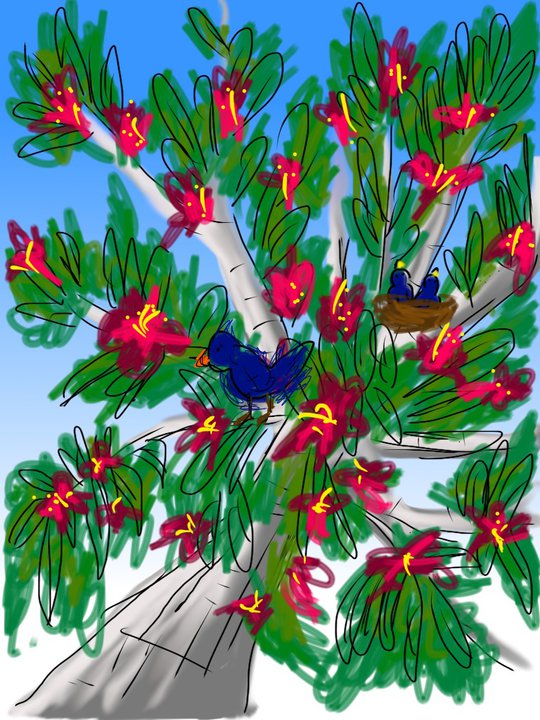 Art, Birds, Cartoon, Cat Food, Colorful, Cute, Flowers, Illustrated, iPad, iPad Art, Kristin Bell, Nature, Pacific Northwest, Painting, Spring, Trees