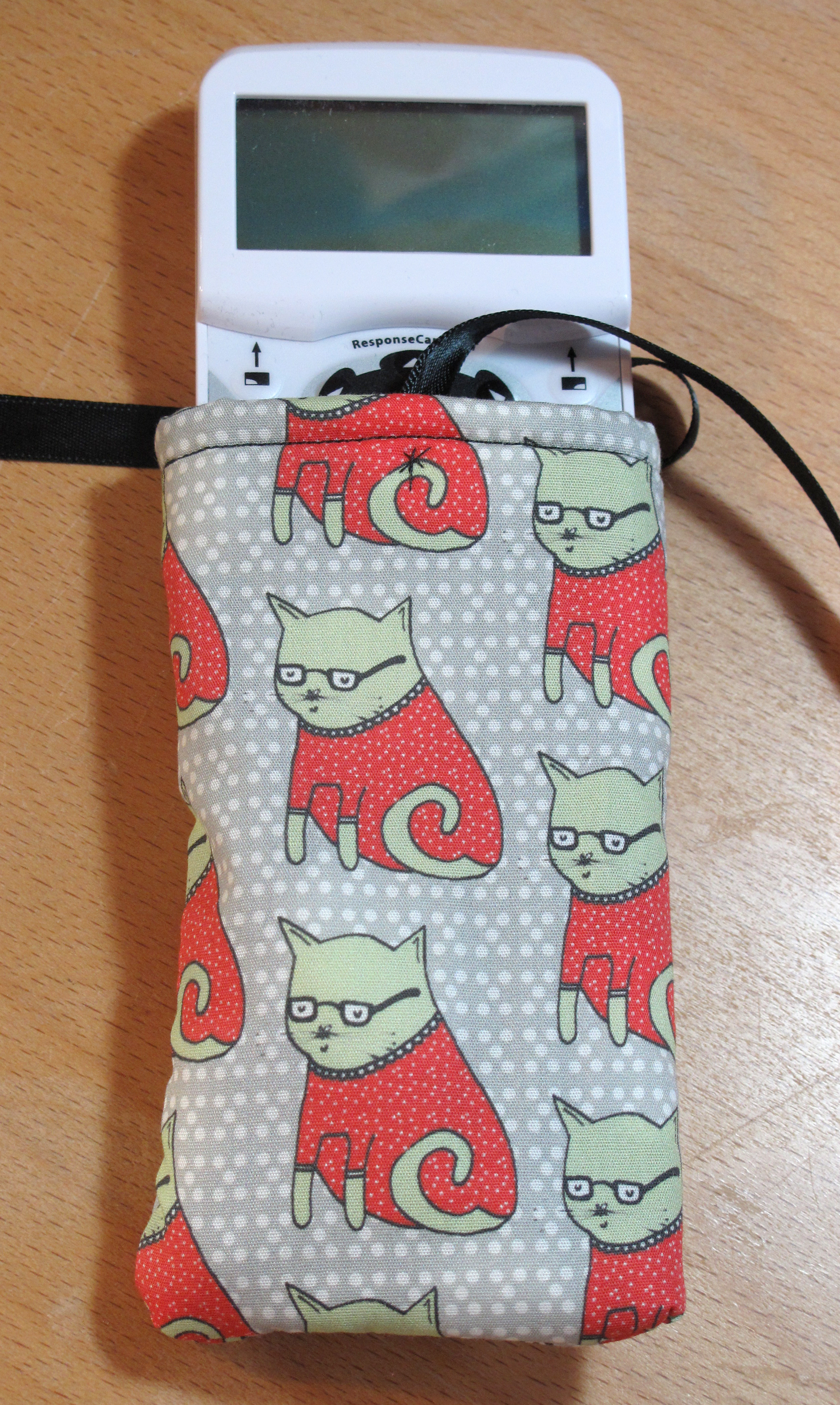 2012, Art, arts & crafts, cat with glasses, Cats, clicker, College, cozy, Cute, design, design your own fabric, Education, fabric, fabric design, Kitties, Kitty, Kristin Bell, Physics, quizzes, school, school supplies, sewing, sewn, spoonflowerWell, I had to buy yet another clicker for school! This one is for Physics class. So, I decided to make a clicker cozy for this one too. I got this cute fabric at spoonflower.com at this link: http://www.spoonflower.com/fabric/425256. I just love this cat with his glasses and sweater! :) He’s sure to help me get an A in Physics! haha! I wish! :)