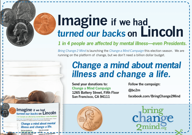 Bipolar, Bring Change 2 Mind, Collection, Depression, Kristin Bell, Licoln, Mental Health, Mental Illness, Pennies, Psych Meds, Psychiatrist, Psychiatry, Psychology, Psychosis, schizoaffective disorder, Schizophrenia, Shame, stigmaSchizowhat? Website!